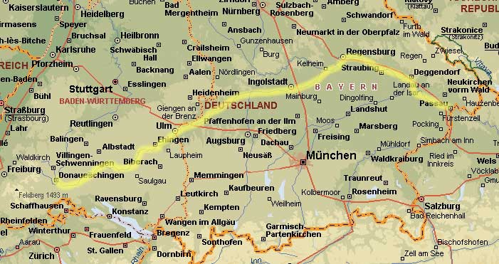 Für mich überraschend: Es waren sehr wenige Radler unterwegs. So beliebt und auch überlaufen wie der Donau-Radweg zwischen Passau und Wien sein mag, auf der Donaueschingen-Ulm-Passau-Strecke war es sehr ruhig und Unterkunft zu finden war nie ein Problem. Meistens um Mittag herum überschauen wir, wie weit wir an diesem Tag kommen werden und dann können wir eine Adresse aus dem Bikeline-Heft anrufen und ein Zimmer für die Nacht reservieren. Es hat immer geklappt. Auch wenn diese Strecke nicht von so vielen Radlern aufgesucht wird wie der Abschnitt Passau-Wien, darf man nicht schließen, dass sie nicht genau so lohnend ist. Der gesamte Lauf der Donau ist eine uralte Kulturlandschaft und historischer Schauplatz. Der Kunst- und Geschichtsinteressierte ist neben dem Fahrradfahren eher überfordert von der Fülle von Sehenswürdigkeiten. Die in den Berichten angegebenen Entfernungen sind die von uns tatsächlich gefahrenen Kilometer auf dem Tacho, alle Um- und Irrwege inklusive. |